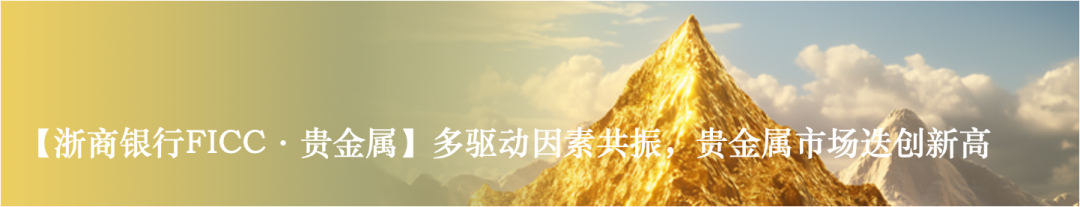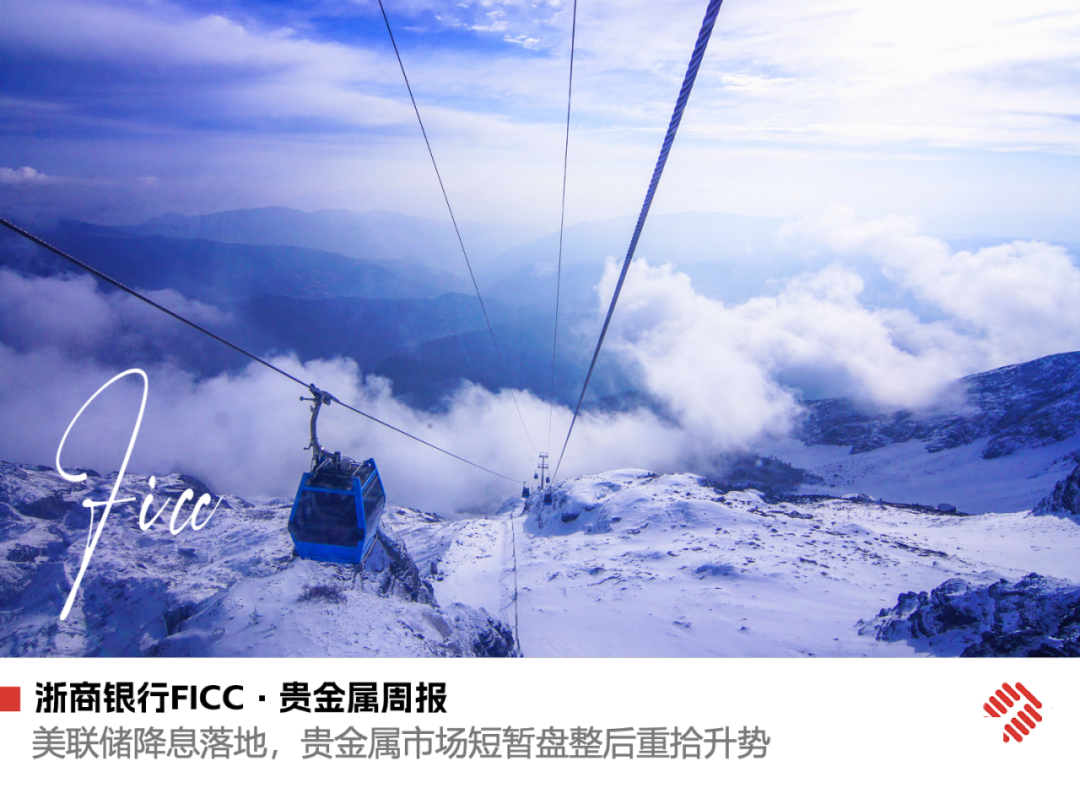 上周,现货黄金开盘在3637.99美元/盎司,最高触及3707.11美元/盎司。周五现货黄金收盘报3684.55美元/盎司,周涨幅1.16%。上周现货白银开盘在42.100美元/盎司,最高触及43.094美元/盎司,周五收盘报43.071美元/盎司,周涨幅2.15%。上周周初,受议息会议前市场加大对美联储年内降息幅度的押注,叠加全球地缘冲突升级,国际金价持续上涨,一度突破3700美元/盎司。周四凌晨美联储宣布降息25BP,受市场“买预期卖事实”交易行为影响,国际金价创新高后迅速下跌,一度触及3650美元/盎司,叠加鲍威尔新闻发布会称本次降息为“风险管理”的降息,美元反弹,现货黄金进入震荡回撤。周五,现货黄金小幅整理后重拾涨势,周线收于3685美元/盎司附近;国际银价刷新近十年高位,收于43美元/盎司上方。