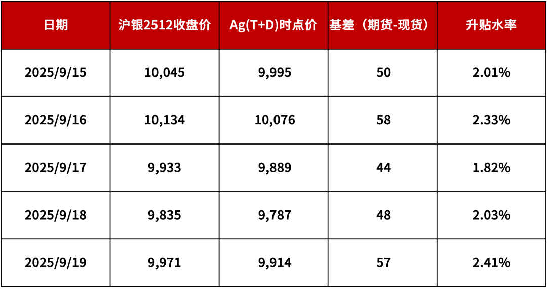 上周,白银期现基差震荡上行,最高触及58元/千克,收盘报57元/千克。在低库存背景下,建议投资者逢高布局做窄头寸。